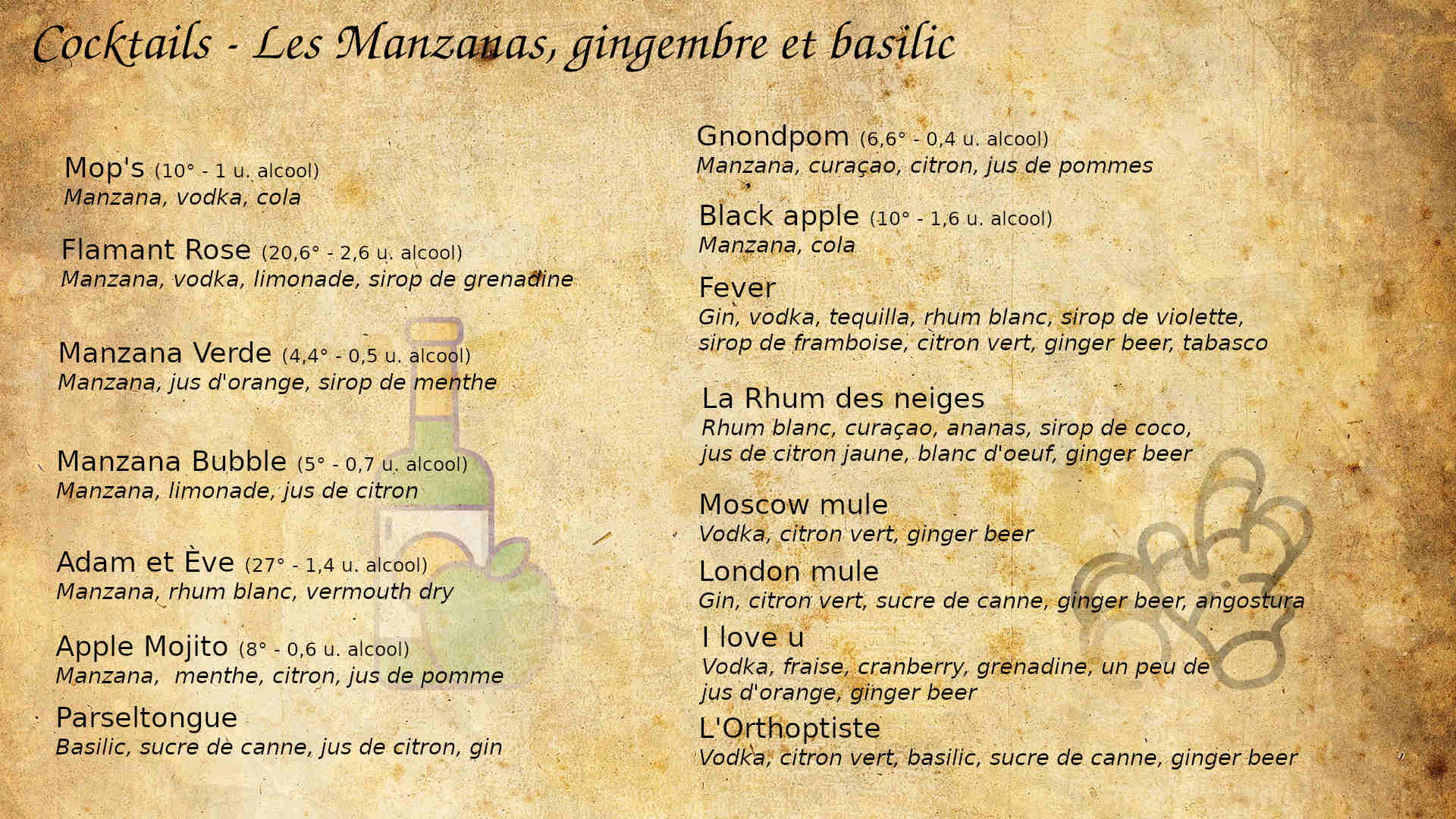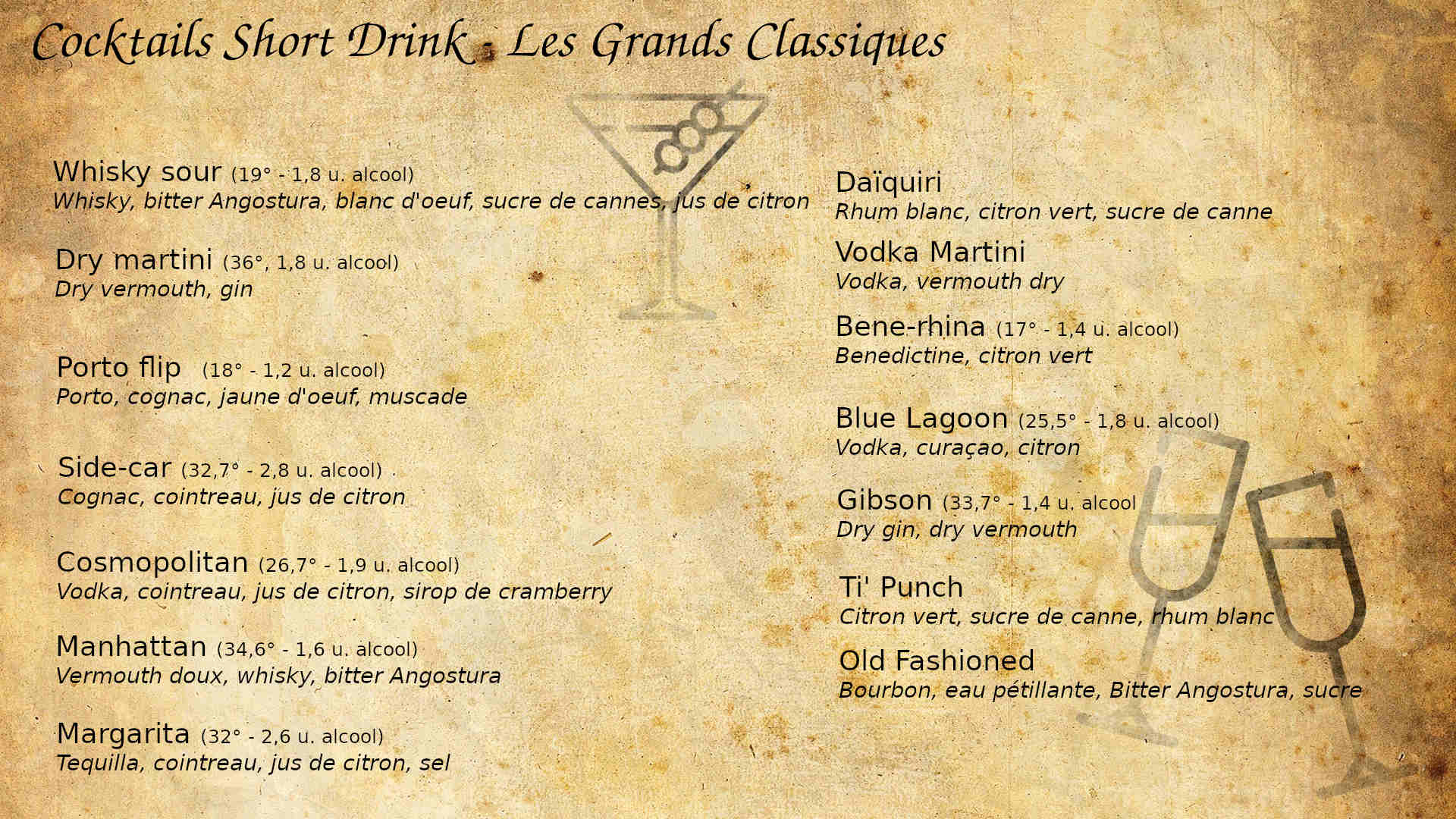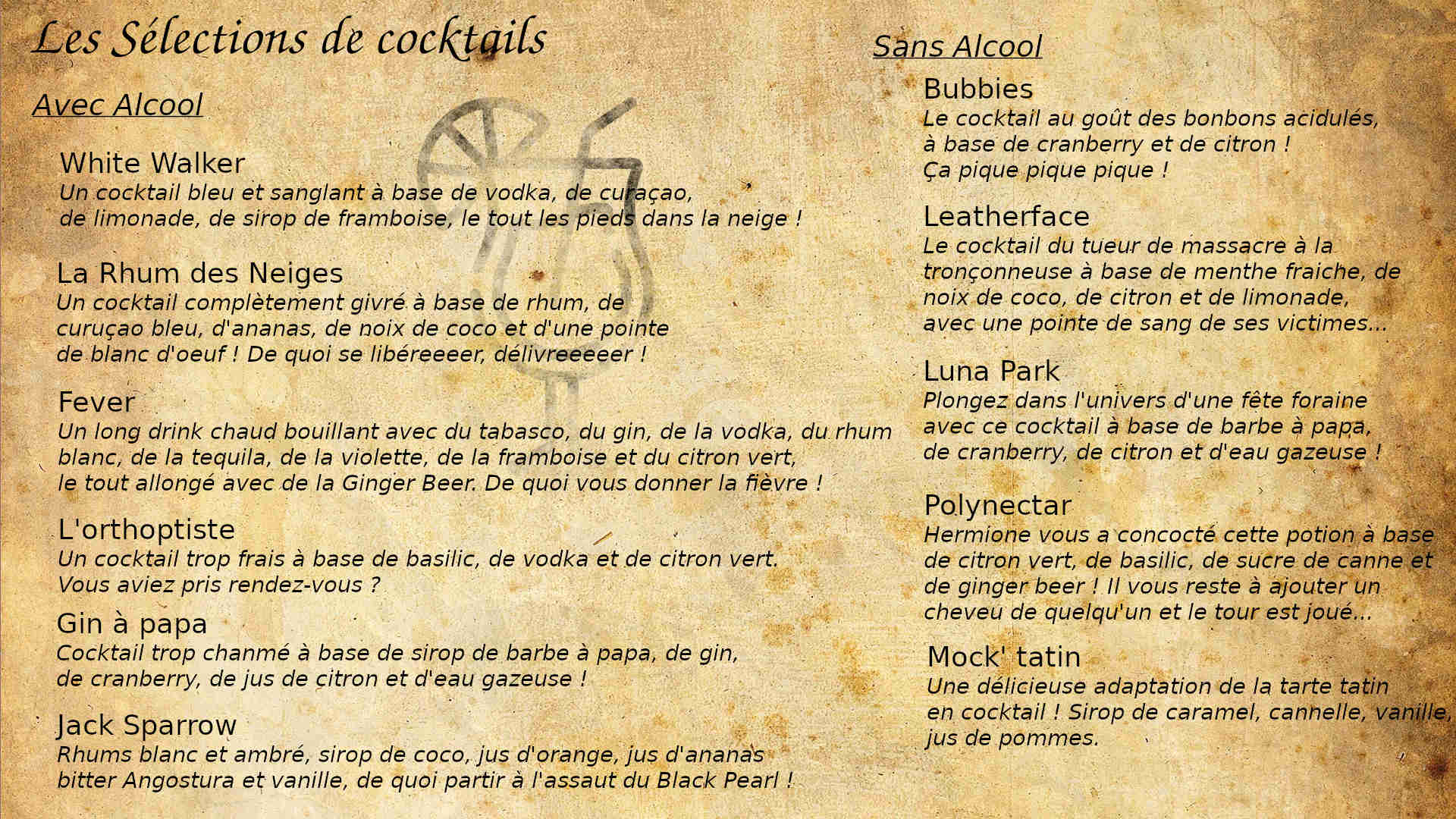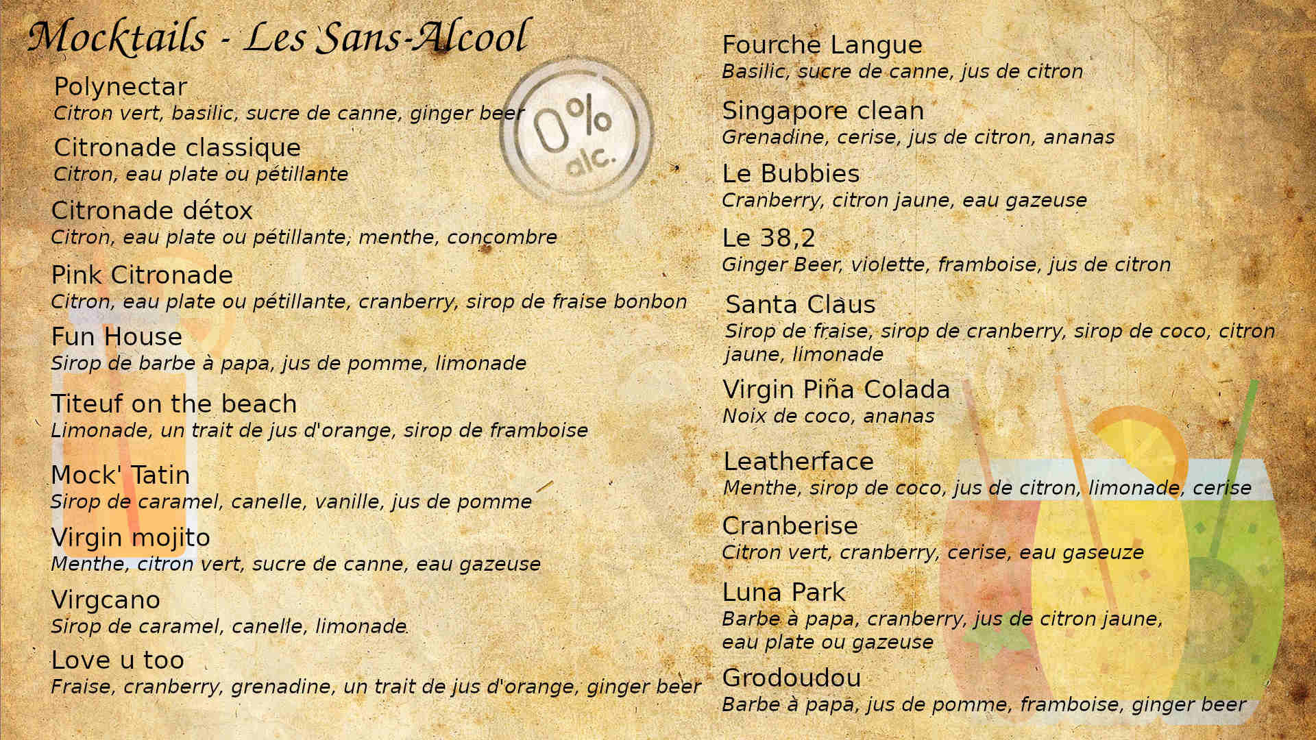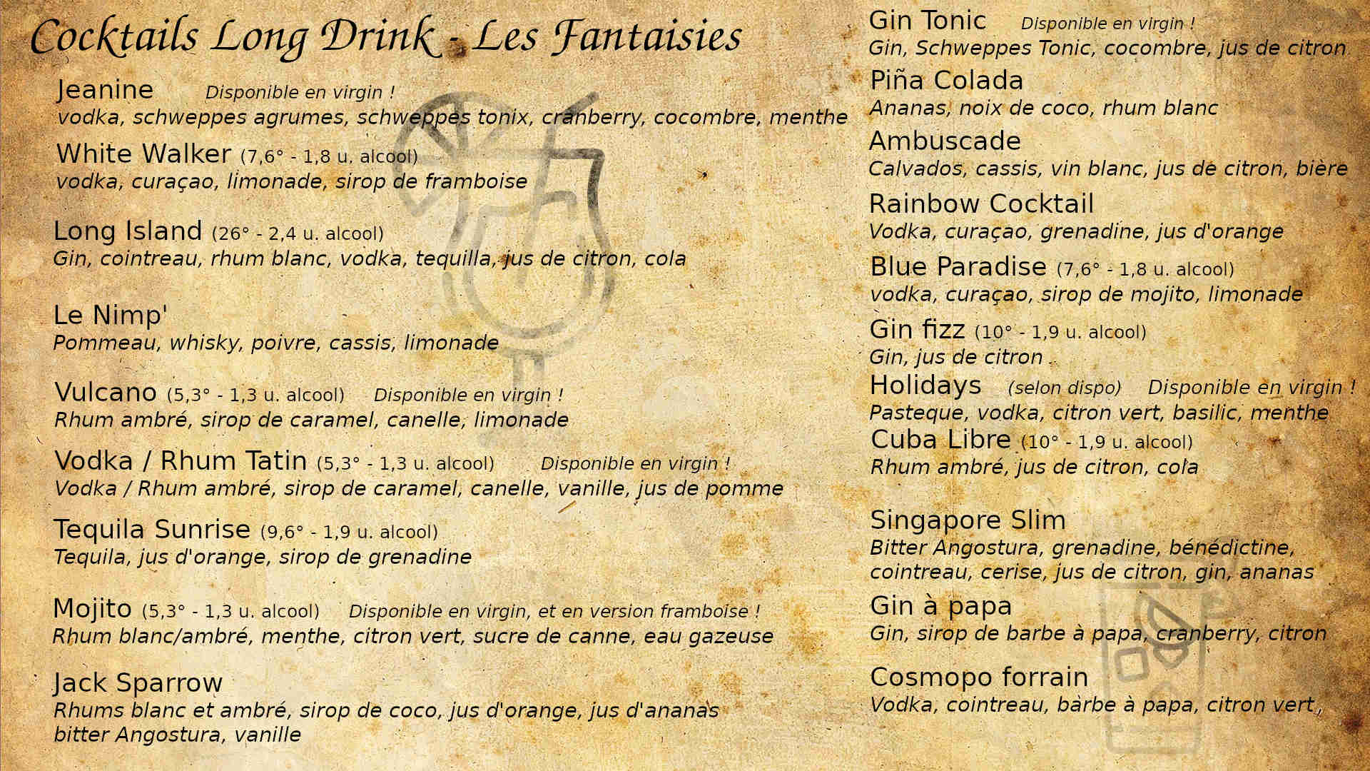 Cartes des boissons